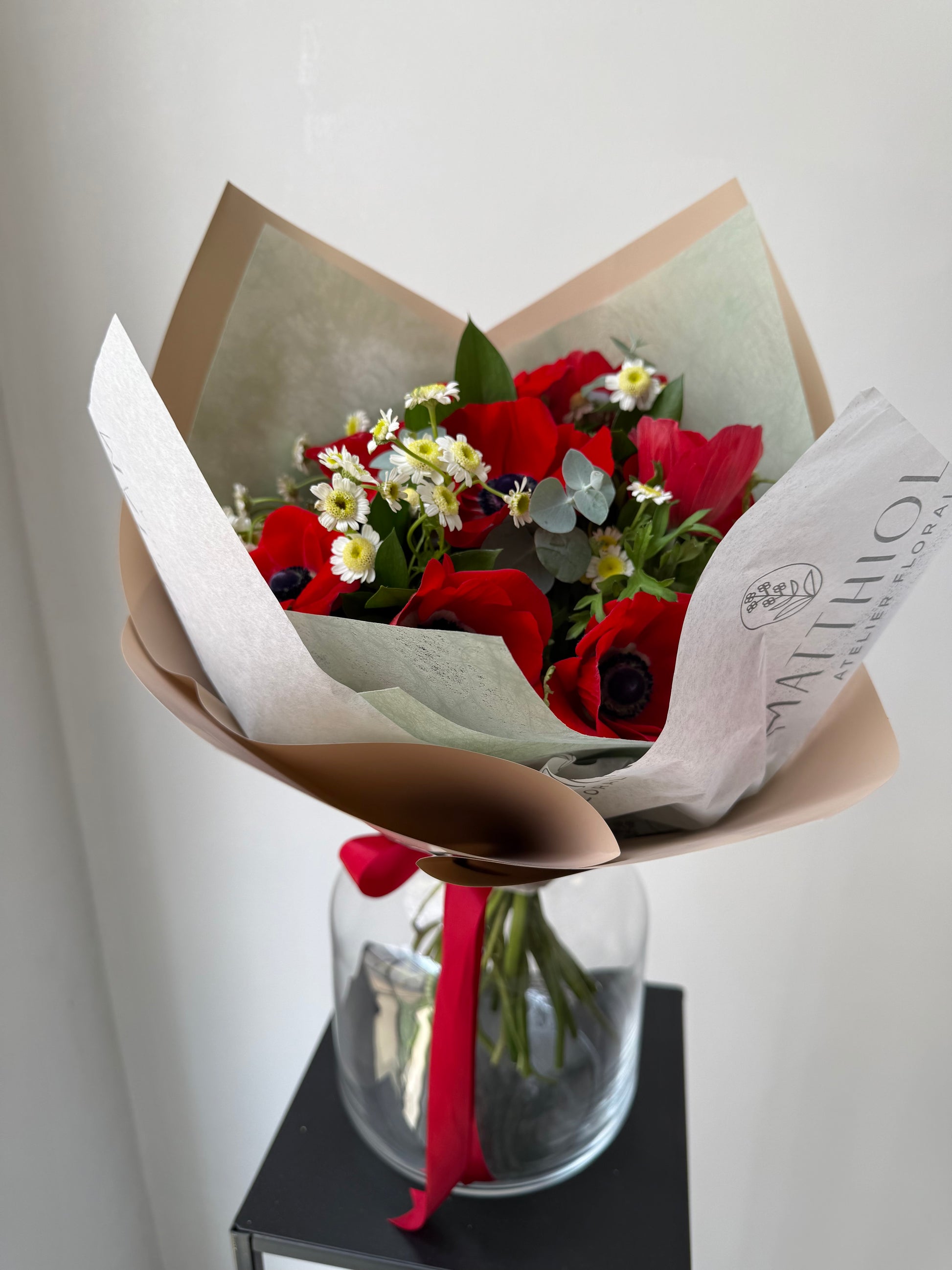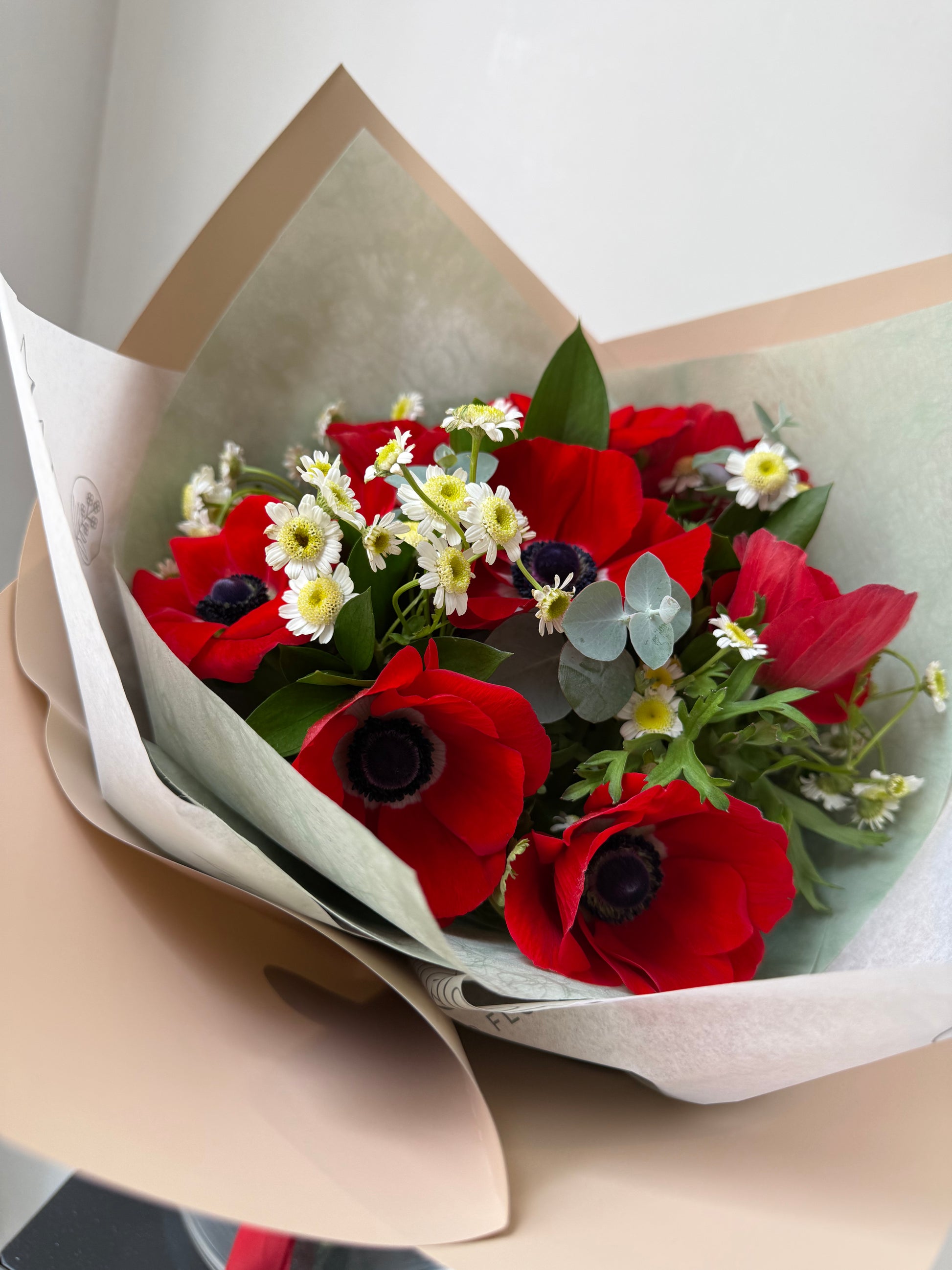 Este ramo de 10 anémonas rojas naturales es una expresión de elegancia y energía intensa. Cada anémona, con su centro oscuro y pétalos aterciopelados, transmite fuerza, pasión y sensibilidad. Acompañadas de follaje fresco y delicado, estas flores capturan miradas y despiertan emociones.